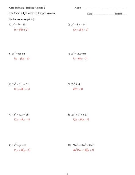 Download Answers To Tenmarks Assignment Factoring Quadratic Expressions Doc